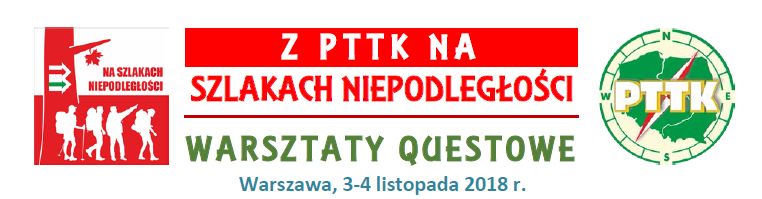 Polskie Towarzystwo Turystyczno-Krajoznawcze serdecznie zaprasza do udziału w ogólnopolskich warsztatach questowych „Z PTTK na szlakach niepodległości”, które odbędą się w dniach 3-4 listopada 2018 roku w Warszawie. Quest będziemy tworzyć metodą warsztatową, polegającą na zaangażowaniu regionalistów, przewodników lokalnych, opiekunów SKKT, młodzieżowych liderów PTTK itp., co będzie sprzyjało wzmocnieniu lokalnej tożsamości, wiedzy o historii własnego miejsca zamieszkania, jak również zaangażowaniu w działania lokalne.